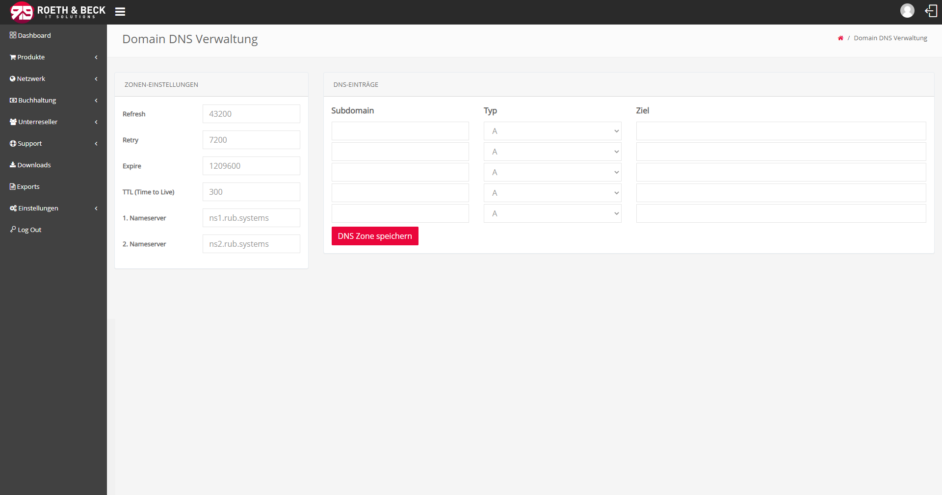 DNS Zone ändern: